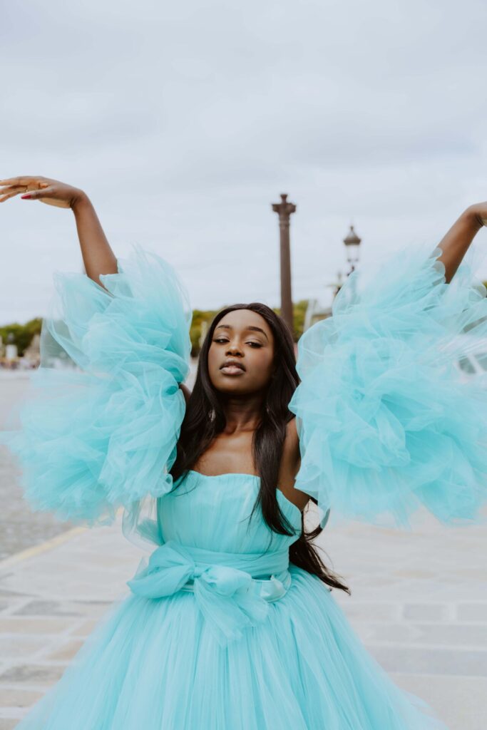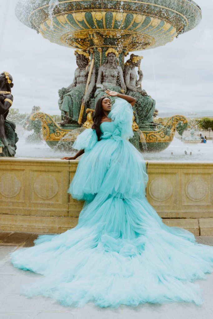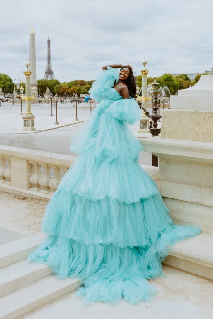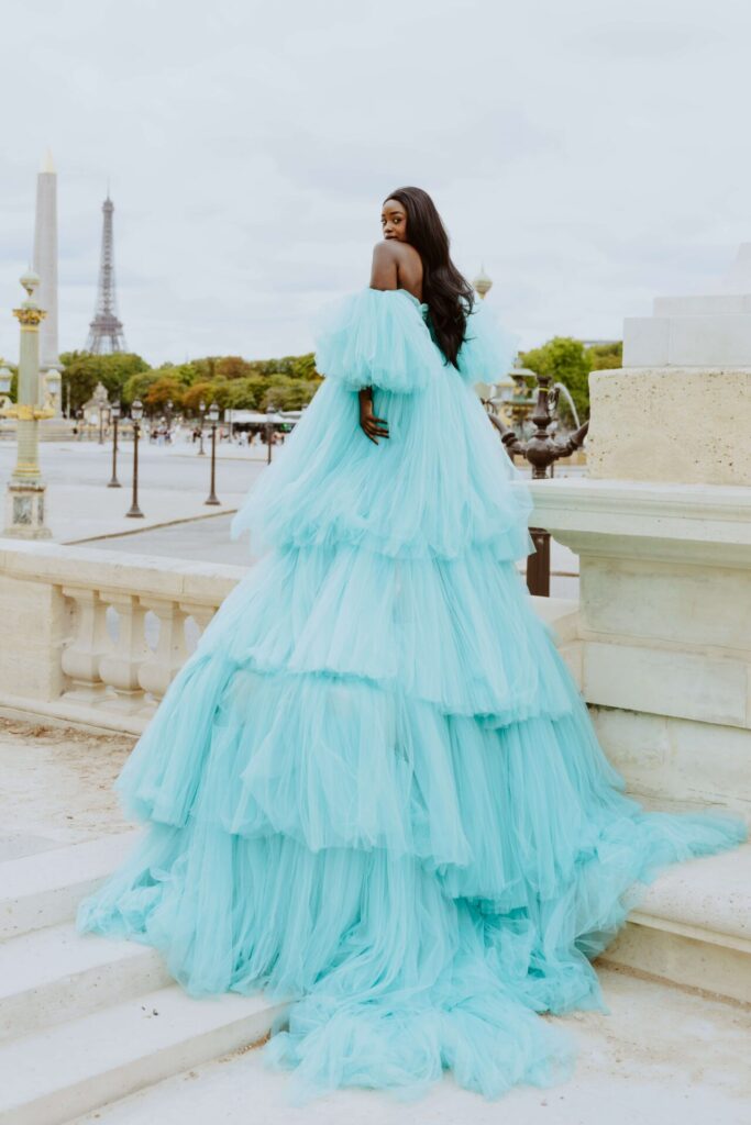 Its bold color makes it a showstopper in every Parisian location, whether you dream of fiery elegance, cinematic movement, or full fairytale drama.